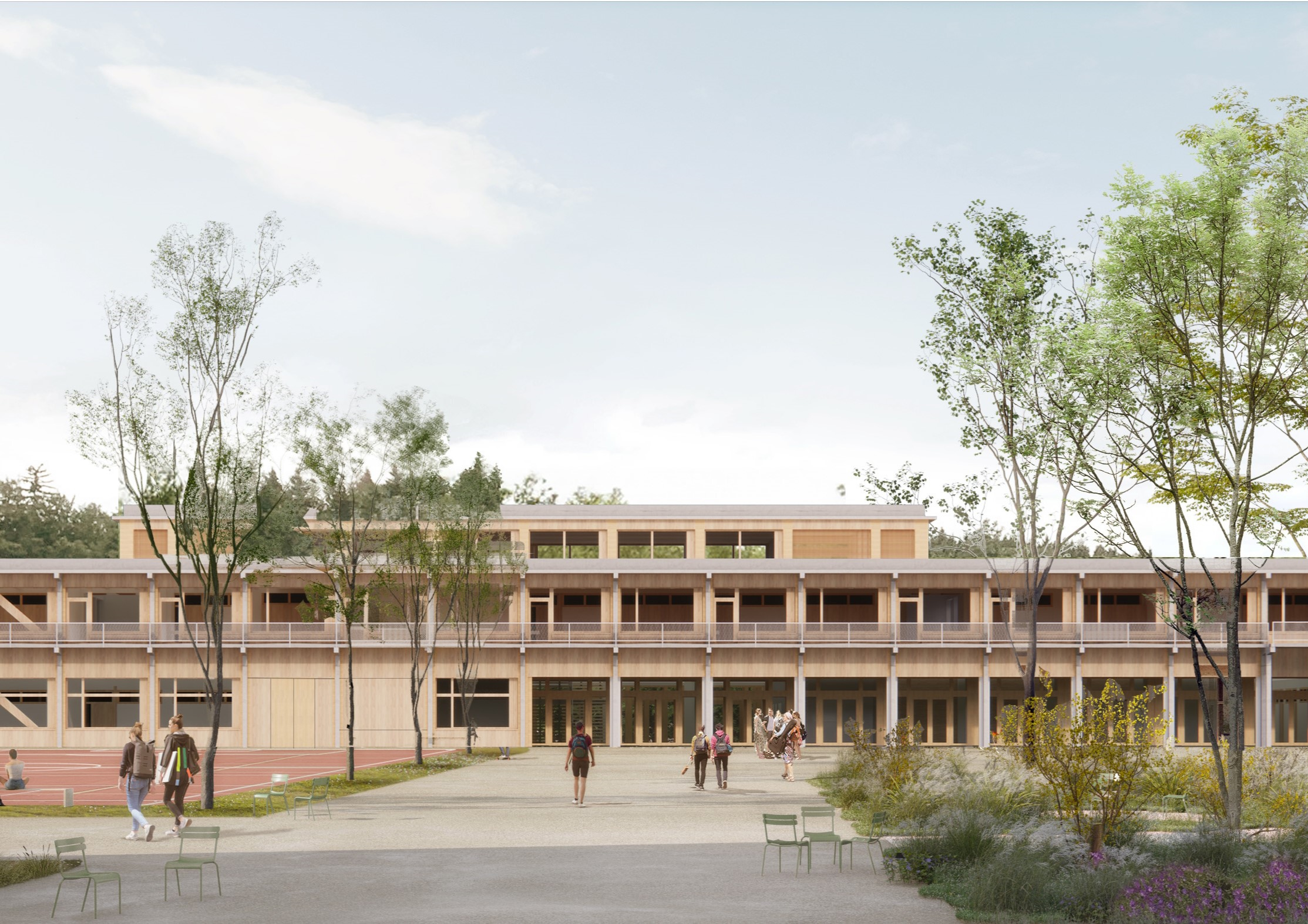 Erweiterung Neues Gebäude für Unterricht und Erweiterung der Sportanlagen. Im Vergleich zu heute wird sich das Raumangebot um mehr als die Hälfte vergrössern. Aktuell sind 700 Lernende in 35 Klassen. Die Prognose ist 1280 Lernende in 59 Klassen. Nebst dem Raumangebot soll die Erweiterung auch eine zeitgemäße Infrastruktur bieten, die modernen Unterrichtsformen gerecht wird. Das Siegerprojekt aus dem Wettbewerb 2022 schlägt für den Neubau eine Bauweise in Holz vor.