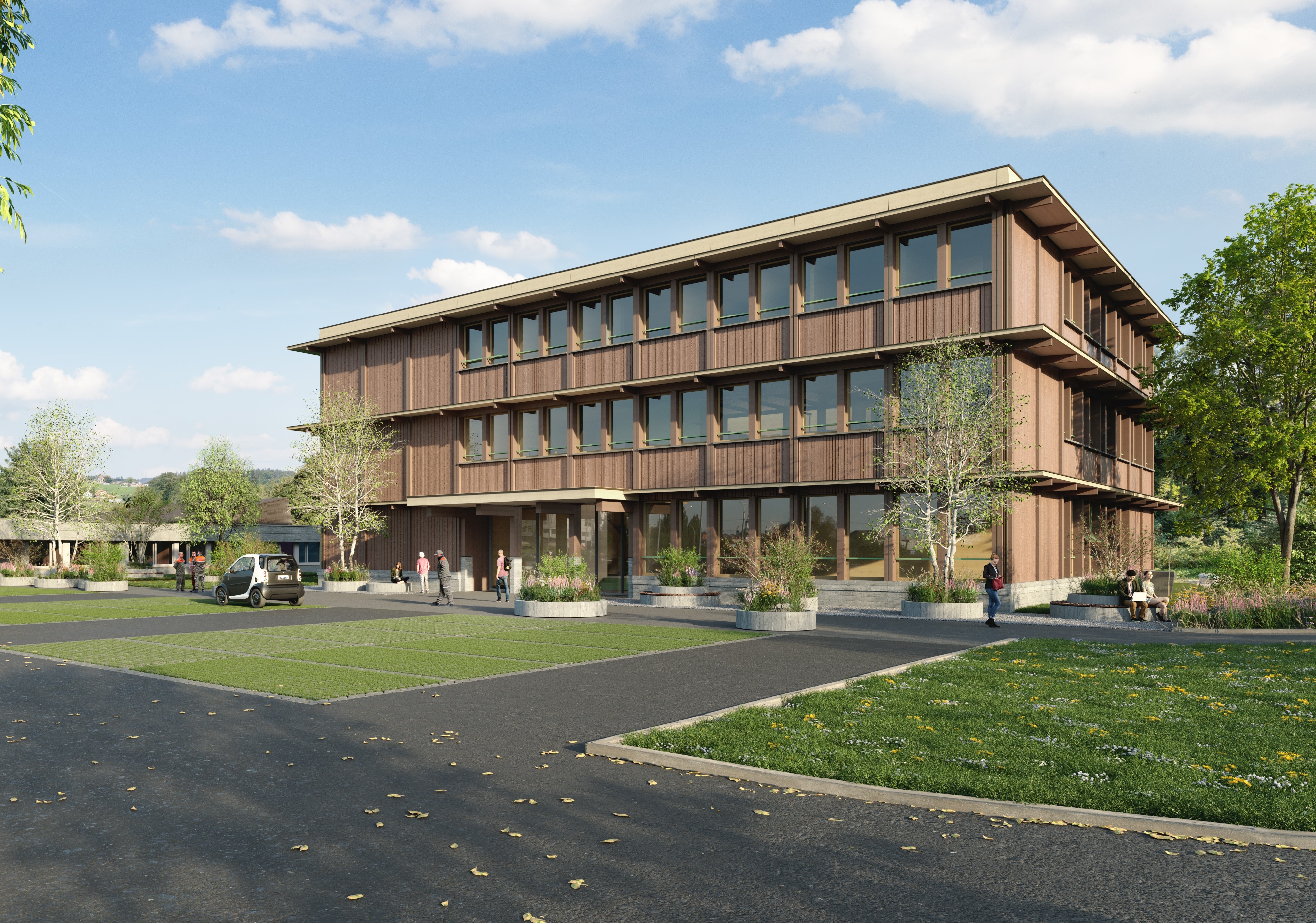 Erweiterung mit Neubau Aufstockung des Gebäudes aus dem Jahr 2005 und Umbau zur Deckung des Raumbedarfs für neu 61 Klassen mit 1200 Schülern und Schülerinnen. Die Erweiterung und der Neubau sollen nebst dem grösseren Raumangebot auch eine zeitgemässe Infrastruktur bieten, die moderne Unterrichtsformen ermöglicht.